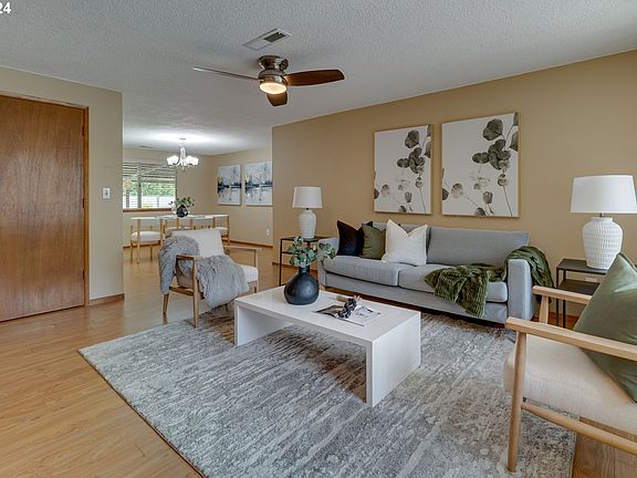 Remodeled Ranch on private corner lot! Inside, the open kitchen space complete with new cabinets and countertops, creates an airy great room feeling extending to the dining and living rooms. The family room is perfect for cozy evenings around the fireplace and provides easy access to the covered patio. Down the hall, you?ll find the expansive primary suite featuring a walk-in closet and ensuite bathroom, alongside a generously sized second bedroom or versatile flex space with luxury laminate wood flooring throughout the home. Completing the picture is the attached garage, offering ample storage, a freestanding gas stove, and a functional workbench. Outside, the spacious yard presents a haven for gardening enthusiasts, with mature landscaping and three thriving blueberry bushes. Imagine indulging in homemade blueberry cobbler come July!