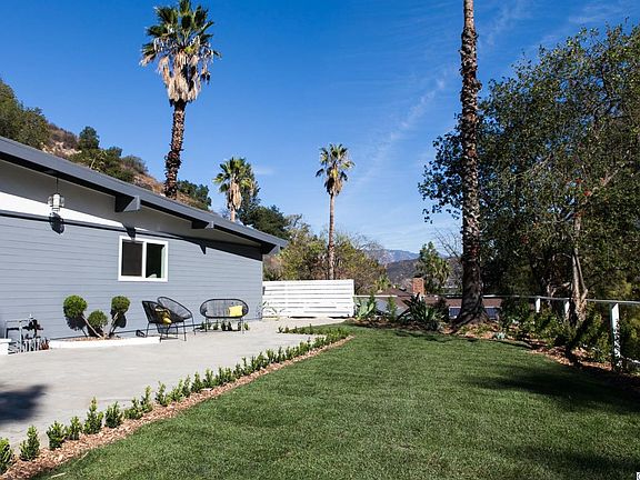 This mid-century modern offers more than just a beautiful sophisticated home, but privacy and views as well. Tucked away at the top of a cup-de-sac and nestled against the bedrock hillside you have mountain views from both the front and the East side. Centrally located, it's a stone's throw from Downtown LA, Burbank and Pasadena and next door to La Canada. This property offers a wonderfully landscaped and well thought out front yard perfect for lounging and enjoying the outdoors. However, ideal for the busy executive who seeks out a low-maintanenece yard. Open floor plan with lots of natural light, high ceilings, large dining area, oversized living room and gorgeous gourmet kitchen, with stainless steel appliances, huge island and plenty of counter/cabinet space. In the center of the living room you will find a see through fireplace that leads you to the private back patio which is perfect for entertaining. Off the main living space and long hallway are two large guest bedrooms with ample closet space, a large linen closet and a beautiful guest bath. The master suite offers fabulous mountain views, a grand walk-in closet and huge master bath with a soaking tub and double vanity. Home audio system throughout. This home is an entertainer's dream come true!