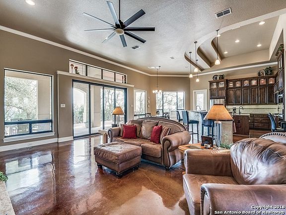 GORGEOUS CUSTOM HOME PERFECT FOR ENTERTAINING. YOU WILL BE IN AWH OF THE LANDSCAPE FROM THE EXTENSIVE WRAPAROUND PATIO WHICH SHOWCASES A BREATHTAKING VIEW OF CANYON LAKE & THE HILL COUNTRY. LIST OF FEATURES AVAIL AT SHOWING. HUNTING IS ALLOWED!! LAND IS SET UP FOR SHOOTING AND ARCHERY. THE ENTIRE COMMUNITY IS WILDLIFE EXEMPT, POTENTIALLY SAVING HOMEOWNERS THOUSANDS ON THEIR PROPERTY TAXES EVERY YEAR. HIGH CEILINGS, SPACIOUS OPEN FLOOR PLAN, TOP NOTCH APPLIANCES & EXQUISITE CUSTOM CABINETRY.