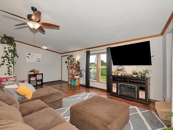 Welcome to a wonderful ranch-style home, perfectly designed for modern living and active lifestyles! This stunning 3-bedroom, 2-full bathroom home boasts an inviting open-concept layout, seamlessly blending the living room, kitchen, and dining area. Flooded with natural light and adorned with natural woodwork, the interior is warm and spacious ambiance, ideal for both daily life and entertaining. Discover two generously sized secondary bedrooms and a luxurious master suite, featuring a private master bath complete with an extra-large soaking tub and a separate full shower – your personal oasis. A convenient laundry/utility room with a direct back entrance leads to a large, private yard. The exterior has newly stained cedar siding and an expansive wrap-around front deck, accessible via dual patio doors, perfect for outdoor entertaining or quiet relaxation. A true highlight is the impressive 28 x 36 pole building, with a 10x16 ft overhead door equipped with a durable cement slab, a large overhead door, a service door, and its own dedicated 200 amp electrical service. This versatile space is ideal for a workshop, storing recreational vehicles, pursuing hobbies, or even a home-based business, offering "ample room for vehicles, a workshop, or all your toys". Experience comfort, style, and unparalleled utility in this exceptional property. Don't miss this opportunity!