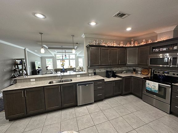 Active 55+ Community! WATER VIEW - Discover this beautifully tranquil water-view home, where comfort meets elegance. The exceptional dream primary bedroom features French doors opening to a private den and lanai, plus double walk-in closets. Enjoy a spacious kitchen with abundant cabinetry and countertop space, ideal for any chef. The large living room with tray ceilings is perfect for entertaining. A split floor plan ensures privacy with separated primary and secondary bedrooms. Additional highlights include a 2025 roof, double garage with extra storage, and serene surroundings that make every day feel like a retreat.
