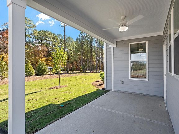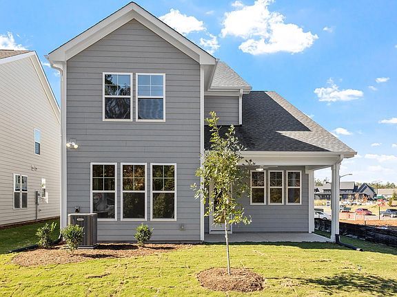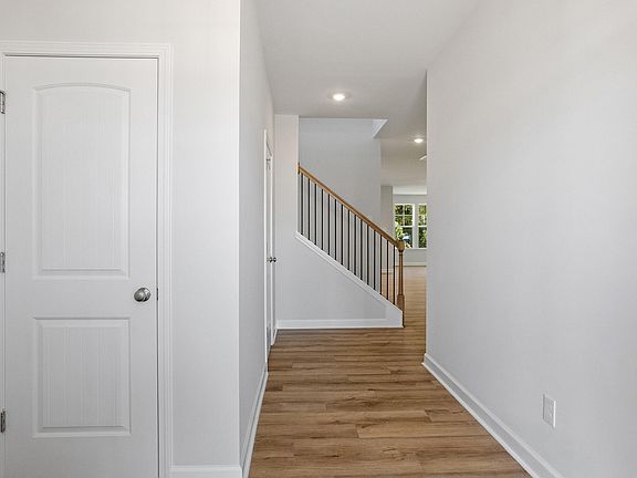 The home is designed with you in mind! At the heart of the home is a stunning gourmet kitchen featuring a GE gas cooktop, upgraded appliances, and an expansive island—perfect for entertaining or everyday meals. The layout includes ample cabinet space, including extra storage above the washer and dryer in the nearby laundry room. Luxury vinyl plank flooring extends throughout the entire first floor and second-floor hallway, offering both style and durability. Hardwood stairs with sleek metal rails lead you to the upper level, while increased baseboards add a touch of elegance throughout. A comfortable first-floor guest suite includes a full bath with a tiled shower, and an additional powder room provides added convenience for visitors. The spacious covered porch offers a relaxing outdoor escape, ideal for morning coffee or evening chats. Upstairs, the primary suite features a boxed ceiling and a beautifully tiled shower in the en-suite bath. Secondary bedrooms are carpeted for comfort, creating a cozy retreat for loved ones and guests. Every detail has been thoughtfully chosen to make this house feel like home, the kind of place where meals are shared, memories are made, and comfort is always within reach.