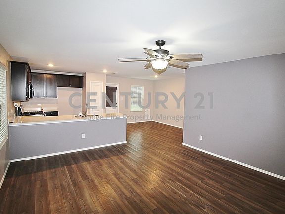 This charming 3-bedroom 2 bath home is move-in ready! As you enter, you'll be greeted by luxury vinyl plank flooring that extends throughout the home, blending modern style with low maintenance durability. The inviting living room flows seamlessly into the dining area and kitchen, creating an ideal space for entertaining guests or enjoying down time. The bright and cheery kitchen is equipped with stainless steel appliances, quartz counter tops and plenty of cabinet space. Primary bedroom boasts an en-suite bathroom with a large shower and a walk-in closet, providing a relaxing retreat. Desirable split bedroom floor plan offers two spacious secondary bedrooms and full bath. Fenced backyard with large open patio extends your living / entertaining space outdoors. This home is close to schools, shopping and dining options. Only 1 pet allowed with owner approval.