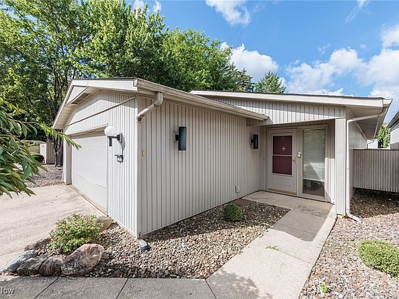 Situated on a cul-de-sac street within Strongsville's Meadowood community, this end unit, 2 bedroom, 2 bath vinyl sided Ranch cluster home offers the perfect blend of comfort and convenience near additional parking and mailboxes. Step inside the spacious, open-concept layout is anchored by a light-filled great room with a cozy brick fireplace with built-ins & dining area, perfect for relaxing or entertaining guests. The eat-in kitchen has plenty of cabinetry, ample prep space, pantry storage, desk area and included appliances, offering a welcoming space to cook and gather. You will appreciate the nice neutral paint & new plush carpeting. Both bedrooms are generously sized, including a primary suite with a large walk-in closet and an private bath w/ a walk-in shower & double sink vanity. A 2nd full bath & 2nd bedroom adds flexibility, whether you’re accommodating guests or needing a home office space. A dedicated laundry room w/ washer, dryer, utility tub & storage; plus convenient access out to the private courtyard. More storage is found in the 2 car attached garage & a workshop area. Outside, enjoy your own private, fenced-in courtyard with a patio ideal for morning coffee, grilling, or a quiet evening retreat. New Hot Water Tank(2023). 1 year home warranty provided. Set in a low-maintenance neighborhood where landscaping and snow removal are taken care of, this home lets you enjoy more time doing what you love. As part of the Meadowood community, you’ll also have access to amenities like a clubhouse, pool, tennis courts, and playground. Conveniently located near shopping, dining, and major highways. Welcome Home!