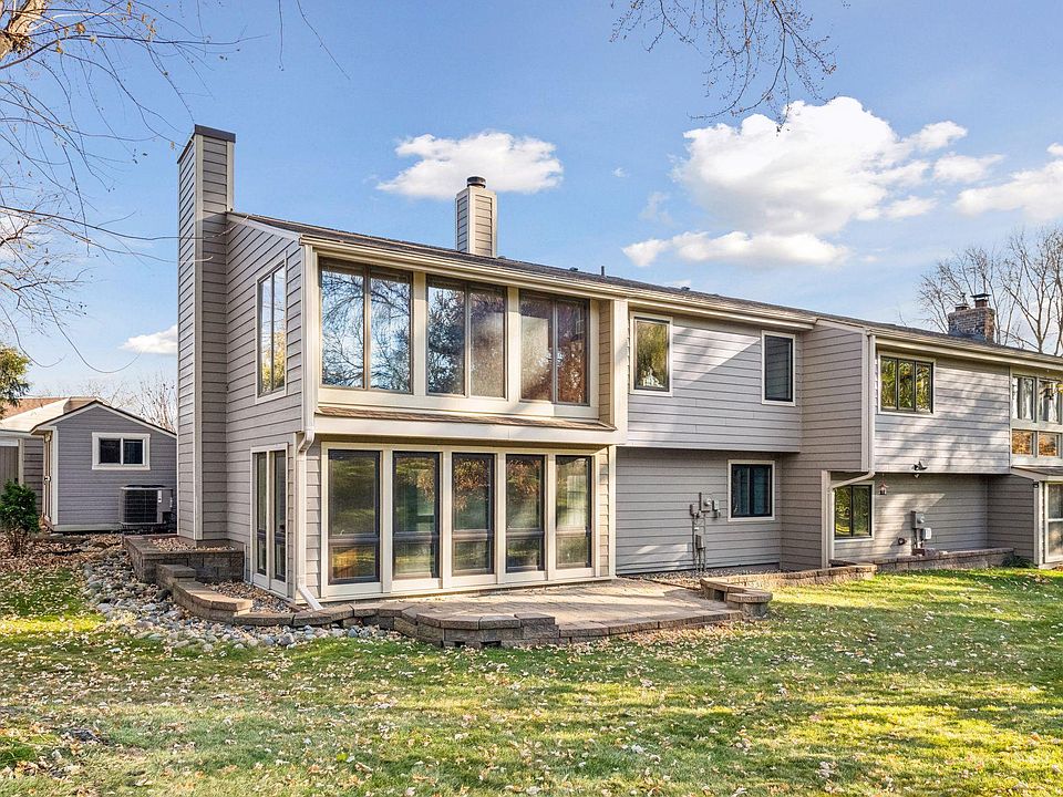 Soaring ceilings! Sunroom + three-season porch! Walkout lower level! The list goes on! Large end unit townhome with four bedrooms and updates galore! Gorgeous premier lot with long private nature views and multiple patios + grassy space. Open concept floor plan and so many windows fill both levels with natural light! Grand primary suite with private en suite bathroom and multiple closets. NEW: flooring, kitchen cabinets, quartz counters, under-cabinet lighting, stainless steel backsplash, laundry cabinet, water heater, paint, and more! Newer roof, siding, windows, and mechanicals. Appreciate the vaulted ceilings, wood beam, stainless steel appliances, gas range, two beautiful fireplaces, heated floors, paneled doors, humidifier, front fenced courtyard, paver patio, LP siding, gutters, Tuff Shed, and oversized garage. West-facing with wonderful sunsets! Amazing walking and biking paths connecting to parks and the Chaska trail system, a part of the lovely Jonathan community. Demand and convenient location. Easy living! Schedule your tour today!