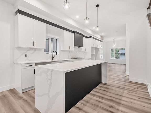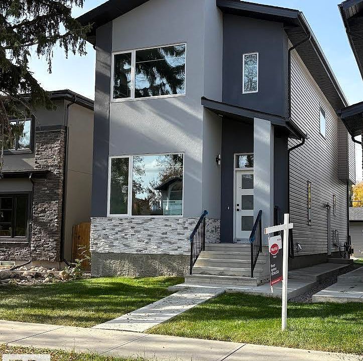 Welcome to this stunning brand-new architecturally designed 2-storey home in desirable Westmount. Featuring 5 bedrooms, 4 bathrooms, and a fully finished basement with separate entrance, this home offers space, style, and potential for a future legal suite. The main floor boasts 10 ft ceilings, triple-glazed windows for natural light, a spacious living room with elegant fireplace, chef-inspired kitchen with quartz countertops, large island with waterfall edge, premium finishes, bright dining area with west-facing deck access, and mudroom with built-ins. The double detached garage is accessed via the back lane. Upstairs offers a serene primary suite with walk-in closet and custom feature wall, two large bedrooms, full bath, and laundry. The finished basement has a rec room, two bedrooms, and full bath—ideal for extended family or suite. Prime location near downtown, U of A, and river valley.
