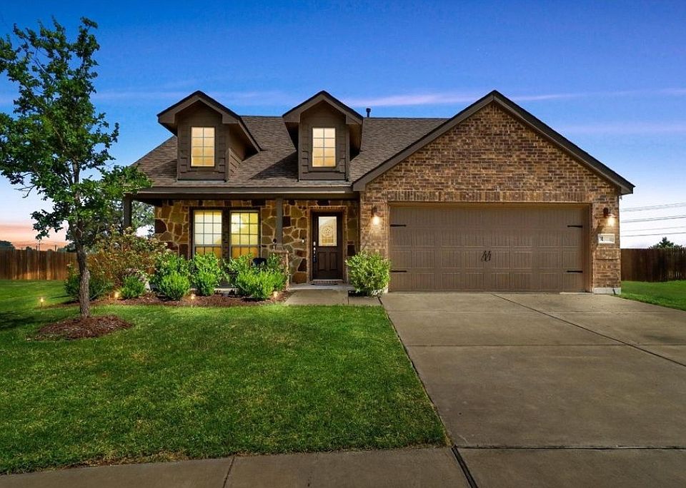 Welcome to this beautiful home situated perfectly on .3 acres in Silverado. This incredible 4-bedroom, 2-bath home has an open concept floor plan highlighted by a formal dining area, a beautiful corner fireplace and features quartz countertops throughout, stainless steel appliances, convenient breakfast bar, and a gas range. Be sure to escape to the spacious primary bedroom with a luxurious ensuite bathroom for evening rest and relaxation. Enjoy your backyard covered patio and rare large lot backing to no neighbors. Community features a resort style swimming pool, splash park, club house and walking trails. Also within walking distance to the on-site Jackie Fuller Elementary School. Easy access to Hwy 380, shops and restaurants.