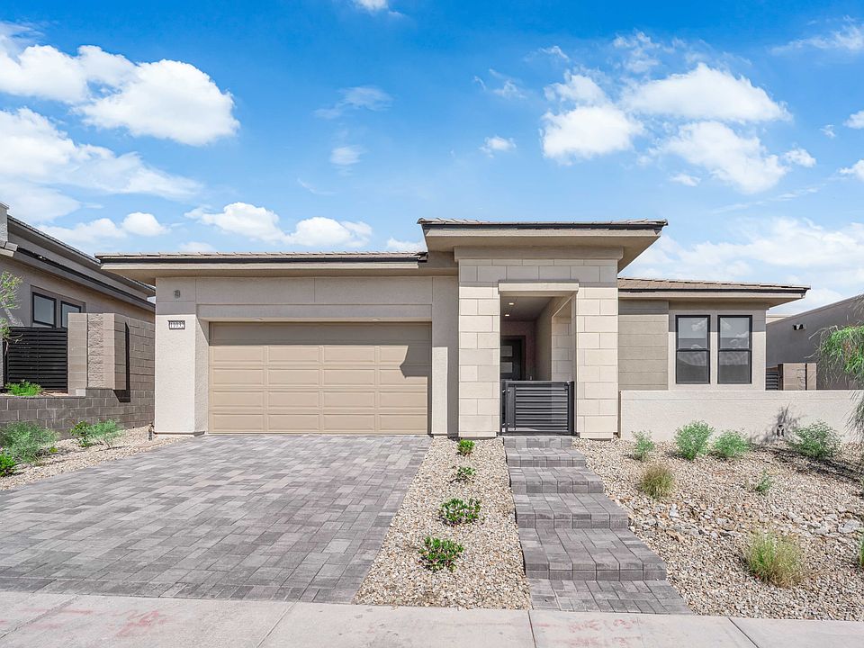 BRAND NEW single-story home with 4 bedrooms plus a den in Summerlin! Located in Ascension, Summerlin's newest guard-gated community near The Summit and Mesa Park, with nearby golf, scenic trails, shopping, dining, and entertainment. This home showcases a waterfall-style oversized kitchen island with stone countertops and backsplash, built-in stainless steel appliances, soaring vaulted ceilings, a fireplace, and ceiling fans throughout. Motorized shutters in the living room, dining area, and primary bedroom add comfort and privacy. The 10-ft collapsible sliding glass doors open to an 18x12 covered patio for seamless indoor/outdoor living. One of the four bedrooms is a private guest suite, offering flexibility for guests or multigenerational living. Future community amenities at Ascension will include resort-style pools and spas, pickleball courts, a state-of-the-art fitness center, golf simulator, and social venues.