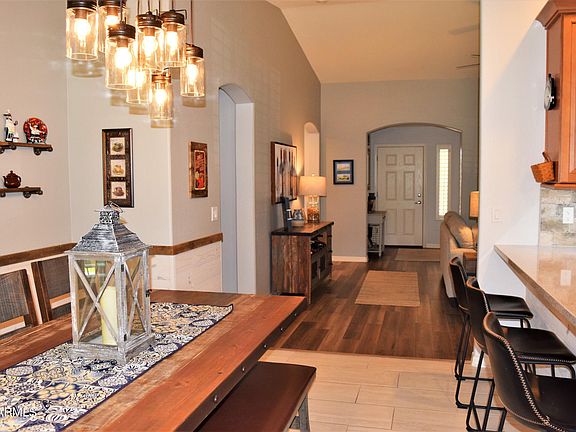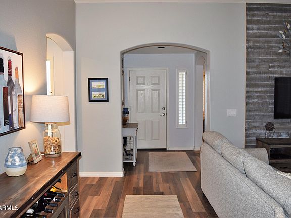 All the other homes on the market are going to be jealous. Complete remodel by owners who planned this to be their forever home. The beautiful kitchen features quality, staggered, maple cabinetry, quartz countertops, pantry, and all new appliances. The primary bath sparkles. It features a custom designed walk-in closet, gorgeous basket-weave tile, quartz countertop, new vanity. Lots of privacy on this corner lot with four shade trees and a thoughtfully landscaped, serenity inducing back yard. Sit comfortably listening to the bubbling fountain. Grow your own in one of two raised beds. Relax on the pergola swing or extended covered patio. Rope lights and colorful sun shades add to the ambiance. Owners spent $100,000 remodeling this pristine home. Put this at the top of your must see list. APS actually owes the homeowners each month with the super saving solar. Between late 2020 to 2023: Interior and Exterior Paint. Appliances. Full home water filtration system. Artificial grass, landscape, and irrigation. Pavers Front & Back. Garage Door. Dual flush toilets. Sun Screens. Half roof replacement (the other side was not in need). Water Heater. Under-counter kitchen lights. Lighting fixtures. Ceiling fans. Shiplap in dining. All new fixtures. Custom Master Closet. Plank wall in Living Room. Full Baths with Quartz Countertops and new vanities. Full kitchen. All flooring. AC. Features worth mentioning: 10X6 Shed. Gorgeous Plantation Shutters. Hall bath has cast iron tub. Extended height block walls. Nest thermostat. Shade trees. Fountain. Pergola Swing. And more.