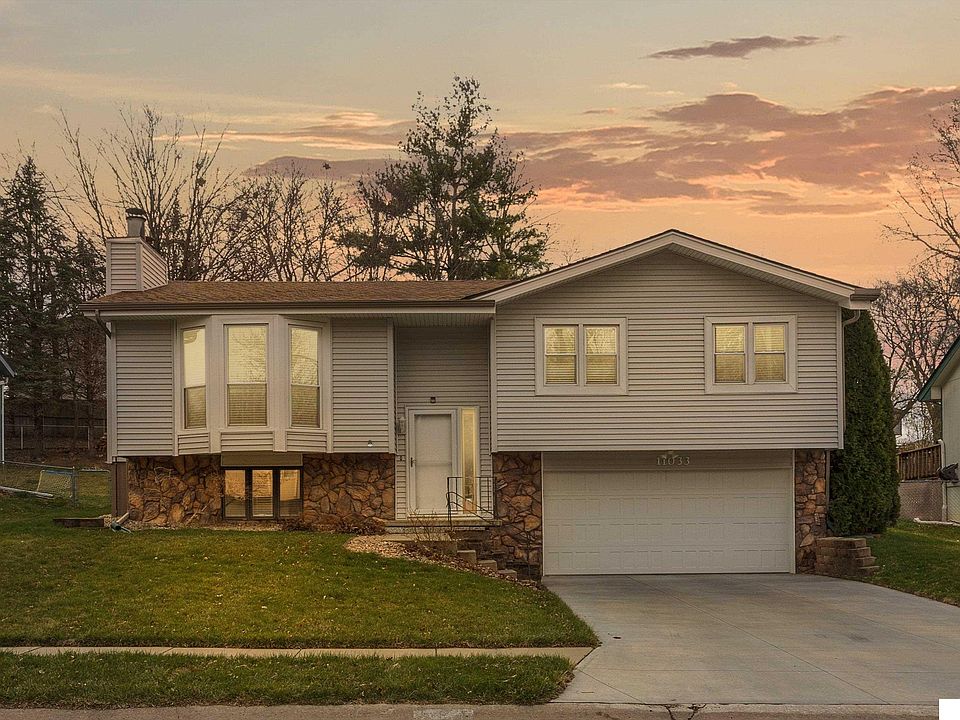 Meticulously maintained home in Northwest Omaha. Kitchen boasts ample counter space and additional mini fridge in the breakfast bar. Newer vinyl siding and underground sprinkler system. Newer driveway and garage door. Newer vinyl windows, roof and gutters. Washer/Dryer included! Fenced backyard, recently stained deck surrounded by raspberries and a relaxing pergola, opening to green space/park and walking distance to the neighborhood Elementary School. New High School! Home is wired for security system. Assumable conventional loan under at 2.875%