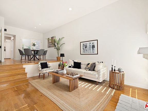 Located in a rare Cape Cod-style complex, this front-facing Westwood townhome is filled with natural light and charming details throughout. The open floor plan features a spacious living room with high ceilings and a fireplace, while the step-up dining area leads to a private atrium that seamlessly connects to the kitchen, perfect for entertaining. Upstairs, both bedrooms offer ensuite baths, including a stunning primary suite with vaulted ceilings, a large walk-in closet, and a versatile loft opening to a private rooftop deck. Hardwood floors run throughout the home, complementing elegant white plantation shutters. Additional highlights include secure underground parking, low HOA dues (including EQ insurance), and a prime location near UCLA, Westwood Park, and top-rated schools, making this a truly special place to call home.