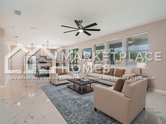 Stunning waterfront home ready for immediate move-in! Enjoy serene water views from the large, screened lanai with an additional paver patio extension offering plenty space for outdoor entertaining. Inside, the flowing open floorplan features with fresh neutral finishes throughout so you can create the home of your dreams with just a few personal touches. The modern eat-in kitchen boasts sleek granite countertops, stainless steel appliances, and a large center island with breakfast bar seating. A separate formal dining room can easily serve as a flex space to accommodate a home office, playroom, or whatever else you require! Get to know the neighborhood at the community pool, playground, or dog park all just minutes from Oakleaf Town Center. You don't want to miss this one, schedule your showing today before it's too late!