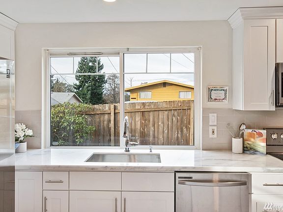 Incredibly livable two-level residence is a real show stopper! So much is new: New flooring, new paint, vinyl windows, granite and marble countertops, new roof with skylight -- the list goes on. Fresh, light-filled living spaces, up-tempo fixtures and finishes, polished island kitchen features new stainless steel appliances (stay), new cabinetry, casual eating nook. French door access to deck. Two generous bedrooms, fresh sparkling baths. Over-sized attached two car garage has access to fenced back yard; and there's plenty off-street parking. Prime North Shorewood location minutes to popular Westwood Village, Lincoln Park, West Seattle amenities, airport. Call Jason now to find out more!