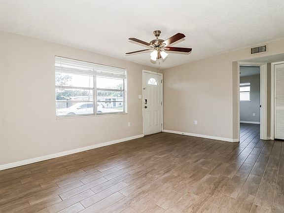 Come tour this cozy rental home with three bedrooms, one bathroom, and a den located in Port Richey, FL. Ideal for entertaining, the spacious living room features a ceiling fan, vinyl plank flooring, and plenty of natural lighting. Step into the beautiful kitchen, which includes granite countertops with a white backsplash, white cabinets, stainless steel appliances, and a large pantry. In the bathroom, you'll find a relaxing garden-style tub, shower, and a medicine cabinet that provides extra storage space. Enjoy some shade under the covered patio or beneath the tree in the backyard. Contact us today for more details on this single-story rental home with an attached garage.