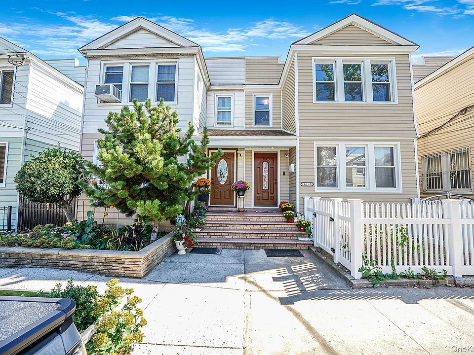Beautifully maintained legal 2-family home in the heart of Ozone Park! The main level features engineered hardwood floors, a formal living room with extra sitting area, a formal dining room that can serve as a third bedroom, two spacious bedrooms, and an updated full bath. The second-floor unit offers rich cherry-finished hardwood floors, a skylight, formal living and dining rooms, a sitting area, three bedrooms, and a full bath. The finished basement includes a separate entrance, office space, full bath, laundry room, bonus room, and utility room—perfect for extended family or additional living space. Conveniently located within walking distance to three train lines, multiple bus routes, and three schools, this home combines comfort, functionality, and an ideal location for commuters and families alike. There is gas in the unit.