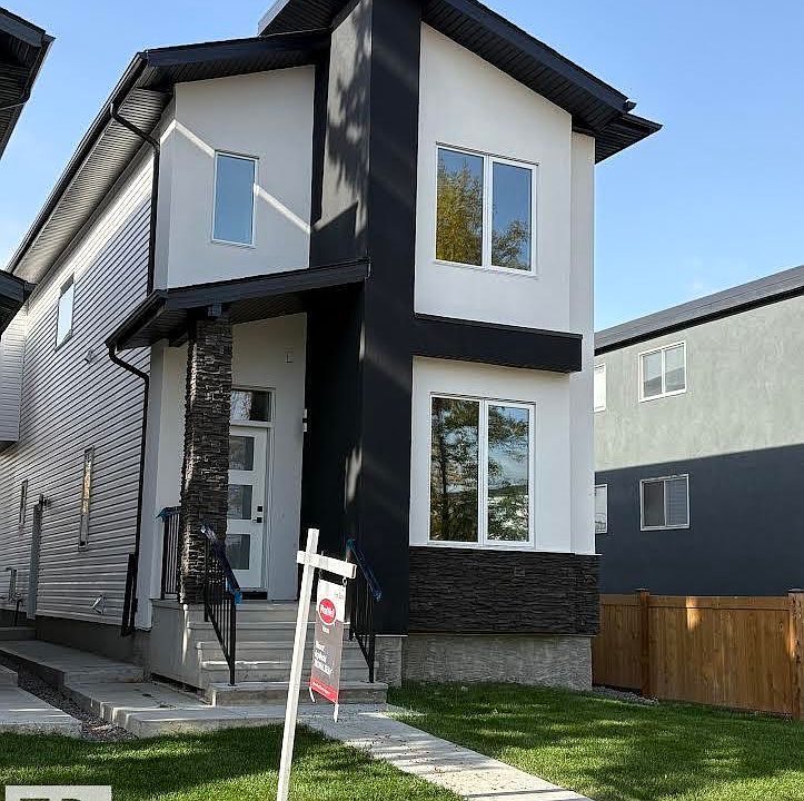 Welcome to this stunning brand new, architecturally designed 2-storey home in desirable Westmount! Featuring 5 bedrooms, 4 bathrooms, and a fully finished basement with separate entrance, this home offers space, style, and potential for a legal suite. The main floor features 10 ft ceilings, triple-glazed windows for natural light, a spacious living room with elegant fireplace, and a chef-inspired kitchen with quartz countertops, waterfall island, and premium finishes. Enjoy bright dining with access to the west-facing deck, plus a mudroom with built-in shelving and bench. The double detached garage is accessed via back lane. Upstairs offers a tranquil primary suite with walk-in closet and custom feature wall, 2 large bedrooms, full bath, and upper laundry. The basement provides a large rec room, 2 bedrooms, and full bath—ideal for extended family or future suite. Easy access to downtown, U of A, and the river valley.