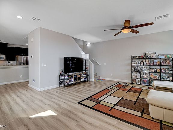 This 4-bedroom, 2.5-bathroom home, built in 2013, features an open-concept kitchen with stainless steel appliances and a center island. The bright living room offers ample natural light, and the primary bedroom includes a spacious closet and en-suite bathroom. Outside, the patio is perfect for enjoying the sunshine or entertaining guests. Located in the Mountains Edge community, the property includes a 3-car garage and is close to local amenities. The water heater is only 2 years old, new hood & microwave, new garage door opener and new garbage disposal providing efficient and reliable service.Convenient Location, 5 minutes to Wal-Mart:Rainbow & Blue Diamond! Expected Rent Rate is $2500/M