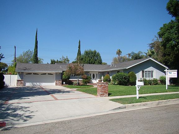 Step inside this beautifully remodelled single story 3 bedroom 3 bath 2125 square foot home located in Porter Ranch, CA. This home has a large lot at just over .3 acres. The home has a large swimming pool, fruit trees, and large grassy area great for kids and entertaining. The inside of the home has been completely refinished with custom touches throughout. The hardwood floors flow throughout into a large open living space with gas fireplace. The bedrooms are all good size and have plantation shutters with fresh paint and carpet. The home has newer dual pane windows and sliders along with a newer air conditioning system helping this home stay extremely efficient. The kitchen has new stainless steel appliances and a beautiful glass backsplash. This home is absolutely stunning and a must see in person. Close to shopping, freeways, and great schools this makes a perfect place to call home for any family.