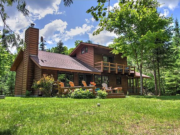This property will give you the feel of being in a lodge with its cedar beams, 14' ceilings & real wood-burning stone fireplace. Walk out to the expansive deck overlooking beautiful Moose Lk. Enjoy summer nights in the large screen porch. Situated in your own secluded cove, which provides solitude with no signs of neighbors. Level elevation to the lake w/365' of meandering sand & gravel lakeshore. Moose Lk is a class A musky lake & also features walleye, bass, & panfish. Catch fish off the dock
