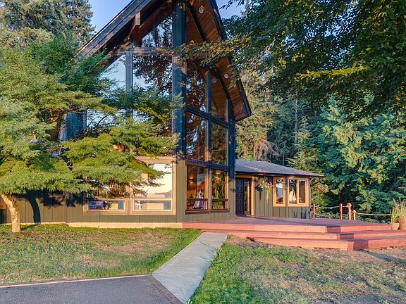 Private acreage with VIEWS! This 4-bedroom, 2.5-bathroom home offers a perfect blend of rustic charm and modern comfort, featuring a dramatic A-frame design and floor-to-ceiling windows that fill the living spaces with natural light and frame serene forest views. Warm wood ceilings, exposed beams and hardwood floors create an inviting atmosphere, complemented by both a grand great room and a cozy family room with a wood stove. The kitchen blends farmhouse character with modern updates, featuring custom cabinetry, stone backsplash and S/S appliances, while the bathrooms showcase timeless tile and stylish finishes. Outside, a large wrap-around deck is ideal for peaceful mornings or sunsets, and the property includes a 25x39 shop, adding incredible functionality to this stunning retreat!
