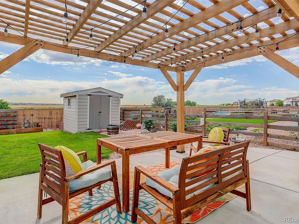 Reunion home with a gorgeous backyard with privacy. This home boasts 5 bedrooms, one being on the main floor and a full bathroom for convenience. The main floor is an open concept with spacious room in the living, dining and kitchen. You're welcomed into the home with updated engineered luxury vinyl flooring that is carried throughout the main living areas of the home. Updated light fixtures throughout the home that elevate the look and feel of the home. In the kitchen there are upgraded granite countertops along with a newly installed backsplash! There is plenty of counter space and cabinet space for storage and a big walk-in pantry. The main floor finishes out with a mud room coming in from the garage with another coat closet. The upstairs has a beautiful loft with bookshelves making it a great place for an office, kids playroom or hangout area. The primary bedroom is located upstairs with an en-suite that has double sink vanity with updated quartz countertop, a tiled shower with a bench, linen closet and a custom wardrobe organizer in the walk-in closet. There are two more bedrooms upstairs, a full bathroom with updated flooring and quartz countertop and the laundry room with included washer and dryer. The finished basement has a giant great room that has room for a gym and family room. Additionally there is a full bathroom and large bedroom with an over-sized closet. A dedicated storage room downstairs is perfect for all your extras. The backyard Oasis has a full length concrete patio and pergola to sit out on and enjoy your beautiful, peaceful yard. The shed provides extra storage as well!
