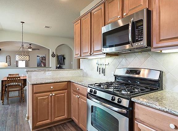 Beautiful, 3 Bedroom 2 Bath one story stone House, large office with French door, open floor plan, large master, lots of upgrades, Granite countertops, Stainless steel appliances, Fans in all areas, 2 inch mini blinds all windows. refrigerator, covered patio, nice back yard, priced right to lease. Must see to appreciate. Enjoy all the amenities Tera Vista has, Parks, 3 pools, 2 fitness centers, club house, hiking/jogging trails, sport courts.