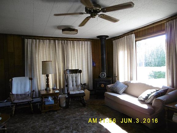 Riverfront property! This is an older house, very cozy and comfortable with 2 beds, 1 bath plus a large mostly finished basement that has the utilities, a big family room, and a room that could be a bedroom with the addition of an egress window. Wood stove upstairs and an attractive diamond willow railing on the stairs to the basement. Nice lawn and hedge in front, fenced, big lawn in rear right up to the beautiful river. The attached shop/garage is a mechanic's dream with shelving, a half bath (that is disconnected), door to the rear yard and lots of storage space. There is a huge collection of mechanic's tools that the seller will convey to a buyer for $2,500, likely worth 4 times that amount.