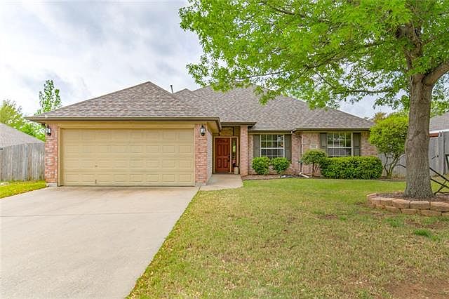 Adorable 3 bed, 2 bath home in Oak Valley Estates. Lovely living area with cozy fireplace & open to dining area with a wall of windows and built in window seats. Cooks kitchen with light granite accented by black & white appliances, large farm sink, windows and separated from dining by breakfast bar. Master bedroom has lots of natural light, room for sitting area and en suite with 2 granite vanities each with its own sink and a large walk in shower. 2nd bath with granite vanity & tiled shower-tub combo. Beautiful landscaped backyard with rose bushes, covered patio with ceiling fan and storage building with electric & AC which could be used as workshop, garden house or craft shop. Carpet in bedrooms only.