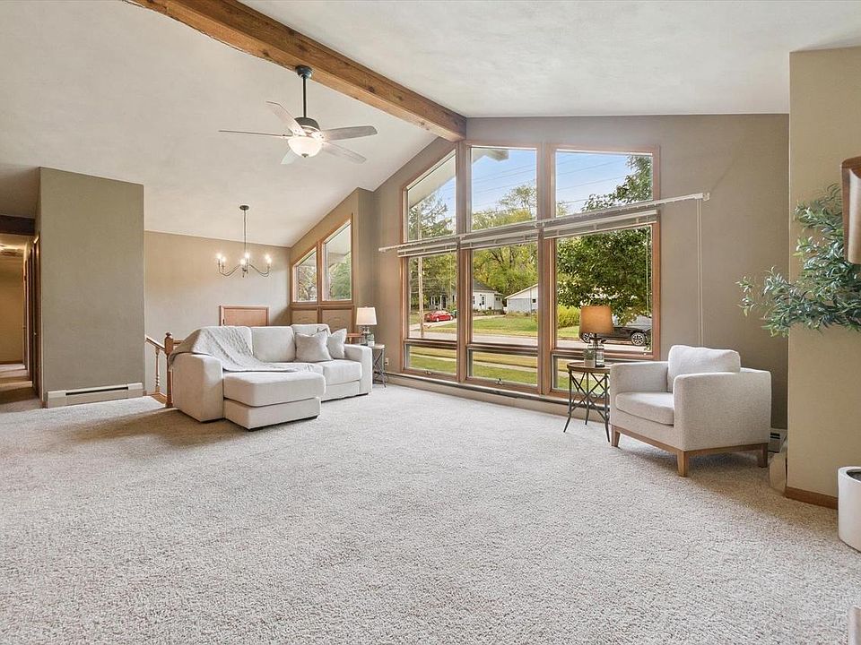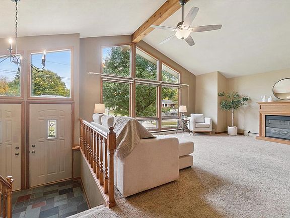 Set on a beautiful 1-acre lot within walking distance to schools, this spacious 4-bedroom, 1.5-bath home offers over 2,600 sq. ft. of comfortable living space. The main level features bright rooms, a spacious updated kitchen and bath with a tile walk-in shower and a large porch overlooking the peaceful, tree-lined backyard with no rear neighbors. A huge 3+ car garage plus two connected workshop areas PLUS an additional upper & lower barn provides plenty of space for projects and storage. The finished basement with fun 70s dcor, a cozy fireplace, and its own walkout porch adds the perfect spot to relax or entertain year-round.
