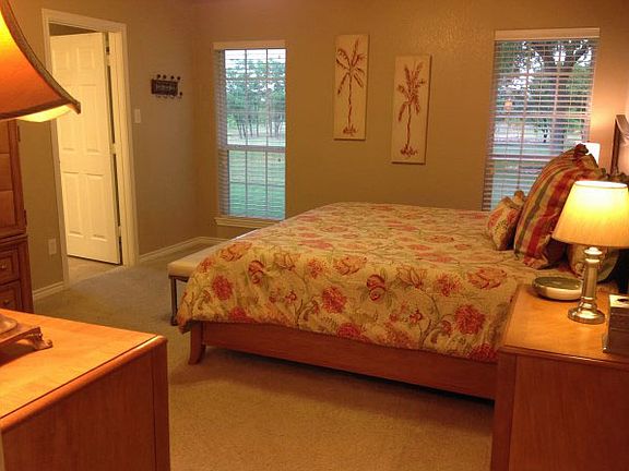 Located just minutes from town in Cedar Ridge neighborhood you'll find this very well maintained three bedroom home with study on almost 2 acre setting. The manicured yard has sprinkler system front and back and a covered patio to sit under while watching the wildlife out back. At the entry is a beautiful leaded glass front door inviting you into the large living area with a rock wood burning fireplace. Off the entry is the study that can also be a 4th bedroom. Across from study is the formal dining area which is right off the great kitchen. The kitchen has a large amount of custom beautiful knotty alder wood cabinets, some with glass fronts, countertops are granite with ceramic tile backsplash. There is also a breakfast bar and a good size breakfast dining area. The home has a split floor plan for the bedroom areas. The spacious master bedroom has a wonderful master bath equipped with double vanity, garden tub, separate shower and a very oversized walk-in closet. The utility room has cabinets on each side of walls with countertop space and a sink. The interior has natural colors throughout with white trim