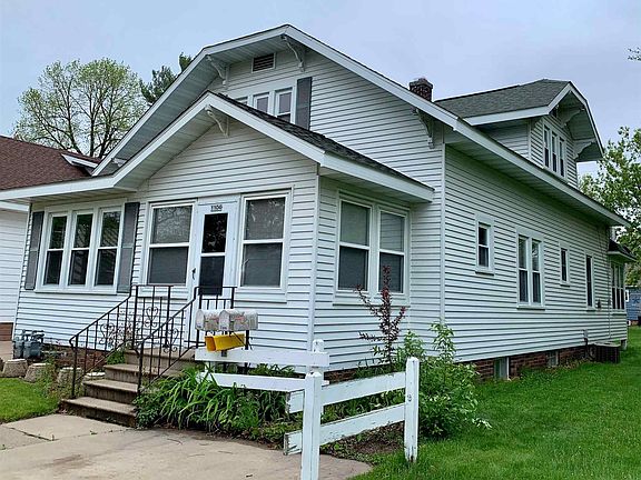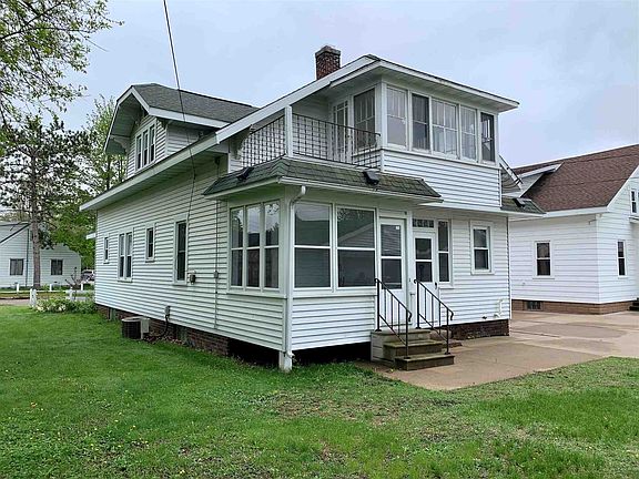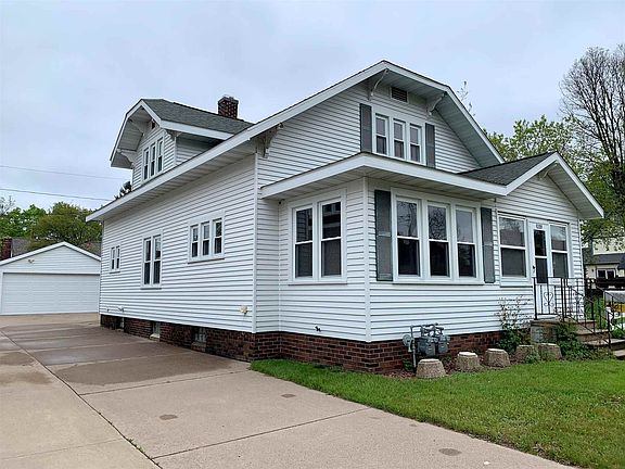Beautiful home features impressive original woodwork throughout. The doors even have glass beautiful knobs! Spacious kitchen has a built in dinette. The dining room is the place to gather. It's open to both the kitchen and living room and shows off its old charm with built in cabinetry. Sun room area off the relaxing living room. Large windows for all that natural lighting! Welcoming front porch with stunning doors and good sized entryway. Two main floor bedrooms and 3 upstairs. Very cool upper level porch overlooking Merrill. Upper lever has hardwood flooring throughout and very nice closet space. Two car detached garage. Maintenance free steel siding. Custom vinyl replacement windows. Updated electric. Central air. Newer furnace. Use this home as a duplex. It has separate electricity and gas meters, shared water. Nice to have that income potential. Or easy to open the stairway to the upper level and it's a wonderful family home!