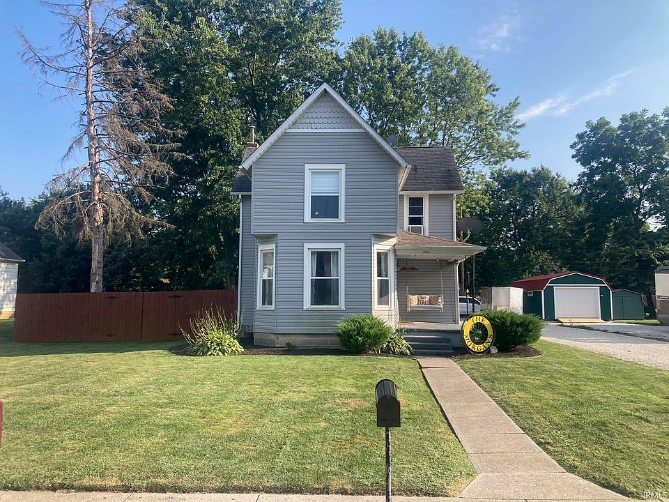 Small town Charm, this 2 story home offers a spacious 2,236 sq. ft. of living space with 4 bedrooms and 2 full baths. Enjoy the open kitchen with stainless steel appliances and hard surface counter tops or spend time on the covered front porch. A fenced in backyard for privacy as well as a 1 car detached garage. Schedule your private showing today!. Sellers welcome inspections but home sells As-Is.