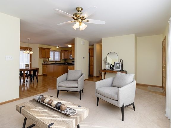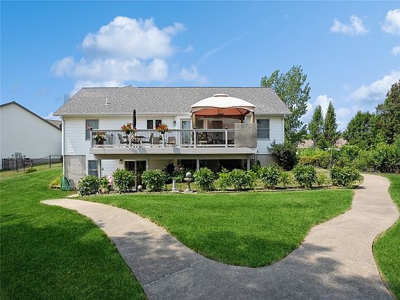 Well-maintained 4BR, 3BA Zero Entry Walkout Ranch on .41 acre lot! Near the Bike Trail and nestled on this Eastside Cul-de-sac. Owners have taken pride in this 2x6 constructed home that was built to be handicap accessible. Roomy living room greets you & opens to Kitchen w/plenty of counter space & cabinets including a pantry with pull-outs. Easy care laminate floors. Stainless appliances included. Note the 12x32 deck with pergola overlooking a fabulous backyard that is finely manicured and established. 1st Flr laundry w/cabinets nearby off the spacious 24x24 garage with 18' door. Split BR plan with Primary BR w/walk-in closet, 2nd closet & 3/4 Bath. Down the hall you'll find 2 more BRs with a Full Bath. This equals 1412 sf on main level. Lower Level leads to more space to enjoy. Family Room walkouts to the covered patio, so keep that in mind. However, you'll appreciate having the 4th BR and Full BA. So convenient to spread out the family or make room for guests. Seller estimates about 480 sf of fin. That means nearly 1900 SF of total finish. Then the awesome storage space. Just think how organized you'll be. You could even create a hobby area, office, game area or toy room. All this and a dry basement. The backyard is fully fenced for furry friends and family. The established landscaping will be enjoyed along with the walking path. Great view of the Hot Air Balloons from this yard. Nice shed too! Don't let this one slip away!