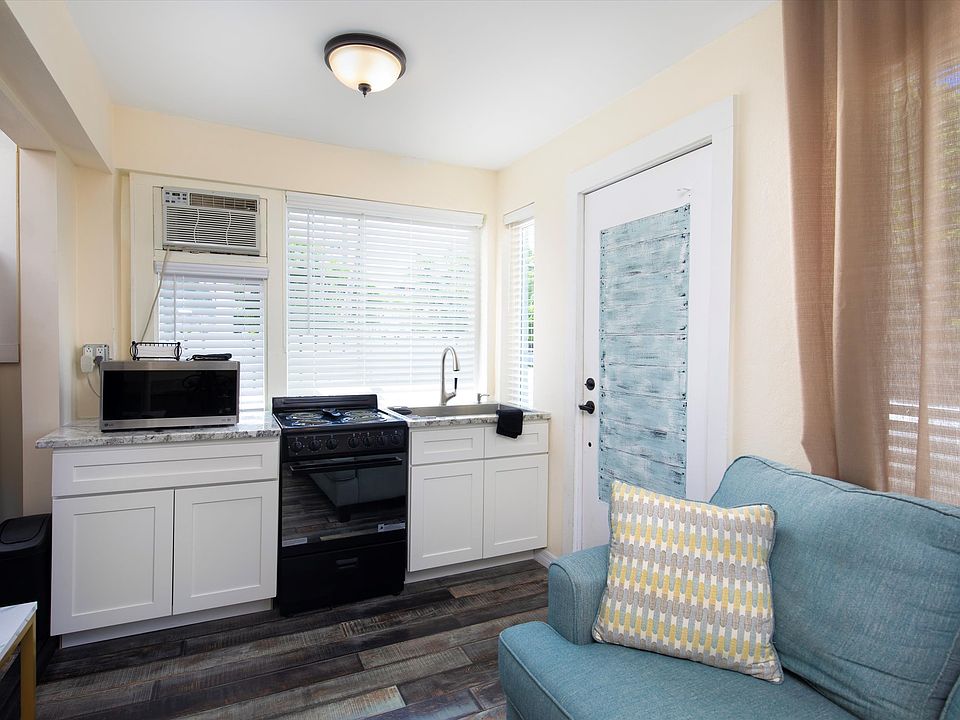 The unit is furnished and perfect for 1 person or cozy for a couple. The unit includes utilities and internet. Everything is provided for your convenience. There is a work station if you work remotely. A small living area and kitchen, bathroom and bedroom with a king.