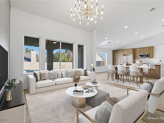 Enjoy this newly remodeled 4-bedroom home showcasing a spacious backyard with an in-ground pool and spa, plus possible RV parking, all perfectly situated in a cul-de-sac. Located with quick access to interstate 11 and less than 5 minutes from Pioneer Park. Inside, you’re welcomed by abundant natural light, high ceilings, painted accent walls, recessed lighting, modern fixtures, chandeliers, plush carpeting, and laminate wood flooring throughout. The inviting kitchen offers a garden view, oak cabinets, custom countertops with gold hardware, stainless steel appliances, and a large waterfall-edge island with seating. The primary suite includes direct backyard access and a separate soaking tub. Contemporary, spa-like bathrooms elevate the home’s elegant feel, featuring dual vanities with framed mirrors, custom lighting, and modern tiled walk-in showers complete with built-in niches and rainfall shower heads.