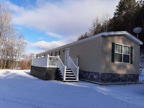 Wow..what a great home and only a few years old. Setting nicely overlooking Hall Stream Valley. On a paved town road & a driveway that goes around the home for easy convenient in & out. Offers a spacious two car garage with auto garage doors. The mobile home is a 2019 constructed with upgrades to suit the north country elements. Sits on slab, anchored & with the skirting insulated. Inside offers a bright open floor plan with higher end details including a gas fireplace (just needs to be hooked-up) and a huge kitchen island. Lots of cabinets and counter space. Separate laundry. Set-up with 4 bedrooms but the 12x14 bedroom addition in the back would make the perfect mudroom. Two full bathrooms with a private bath in the primary bedroom. This makes a wonderful year-round home as your primary residence or one you'll enjoy as your get away made easy. COMES COMPLETELY FURNISED with very nice items. Access to snowmobile trail from the yard and the ATV trail system. A complete package!