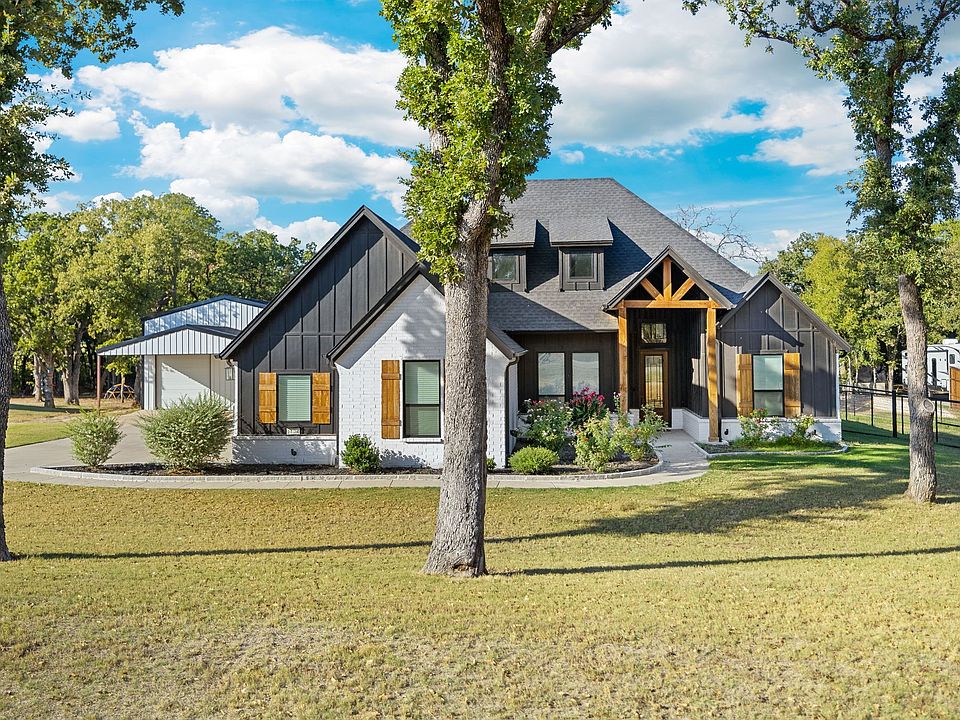 Experience country living at its finest with this stunning 4-bedroom, 2-bathroom home set on spacious acreage with no HOA! The open-concept, split-bedroom layout is centered around a bright and inviting living area featuring a soaring cathedral ceiling and a beautiful black fireplace. Double French doors on either side of the fireplace open to an oversized covered patio overlooking your brand-new heated in-ground pool and spa, both powered by propane — perfect for relaxing or entertaining year-round. The kitchen is a showstopper with sleek waterfall countertops, custom cabinetry, a walk-in pantry, and a double oven. Just off the kitchen, the mudroom conveniently connects the garage to the primary suite, which offers a spa-like bathroom complete with a large walk-in shower, a striking black soaking tub, and a custom closet with built-in cabinetry. The flexible fourth bedroom makes an ideal office or playroom. Outside, you’ll find not only a 3-car garage, but also a 30x40 shop with full electric and climate control, complete with a carport and loft — ready to be finished out for your workshop, guest suite, or hobby area. Enjoy the freedom of acreage, the comfort of modern design, and the peace of mind that comes with no HOA restrictions — all in one incredible property.