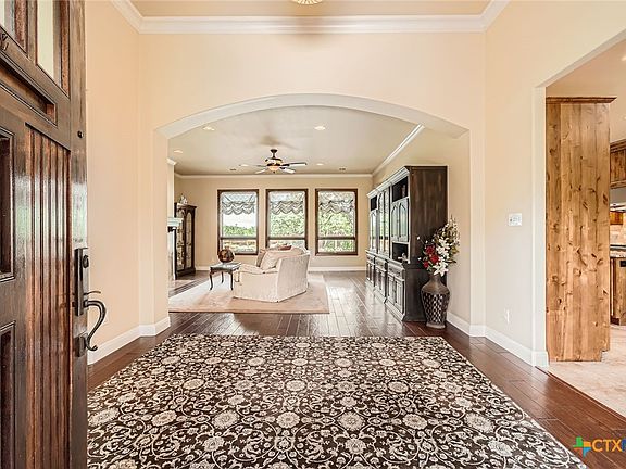 Custom Hill Country Retreat on 5 Acres- Luxury, Craftsmanship & Serenity Awaits. This one-of-a-kind 4,424 sq ft home has timeless craftsmanship and comfort. Set on a very private and secluded, 5 acre lot teeming w/ native Texas beauty and abundant wildlife. This four bedroom 3 and half bath masterpiece is a showcase of artisan detail, starting with one-of-a- kind custom-made walnut and cherrywood front door. Inside, you'll find handcrafted knotty Alderwood cabinetry and solid doors throughout, featuring dovetail construction for lasting quality. The home boasts soaring ceilings throughout, whisper-quiet Smart Switch ceiling fans, air returns in every room and an abundance of recessed lighting and natural light from strategically placed solar tubes. The main living area is grounded by 5' hand planed hickory wood flooring that exudes rustic elegance. The spa-inspired primary suite features a BainUltra luxury jet tub for the ultimate in relaxation. One of the bedrooms offers an ideal layout for multi-gen living to suit a variety of needs. All bedrooms have very large walk in closets. Designed for both lifestyle and function this home includes 2 expansive walk-in attic spaces w/ exceptional storage space. Step outside to an Silverado Mist Bluestone patio surrounded by native Texas landscaping - perfectly positioned so the back patio stays sunny in winter and shaded during the summer, offering a cool tranquil space to unwind while enjoying deer sightings and peaceful views. The separate 24'x16' workshop is a craftsman's dream, outfitted w/ 110/220 electric, its own meter and ample space for creativity. A man-cave w/ a split air unit and private covered patio provides the perfect space to unwind, entertain or watch the game. This property offers a rare combination of luxury living, custom design and natural surroundings- perfect for those who appreciate high-end finishes and wide-open spaces.Conveniently located only minutes away from shopping, banking, and restaurants.
