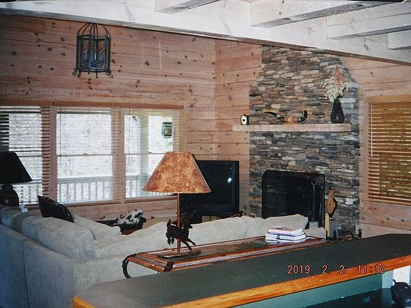 This beautiful cabin sits on a 2.45-acre corner lot in a gated community above the Maggie Valley Country Club with social and golfing memberships available. The main level includes a great room with cathedral ceiling, a hand-stacked stone wood-burning fireplace easily convertible to gas, dining space and kitchen with breakfast bar. Both the great room and master bedroom open to the covered deck with mountain views (a little tree trimming needed) and a hot tub. The master bathroom includes a Jacuzzi.