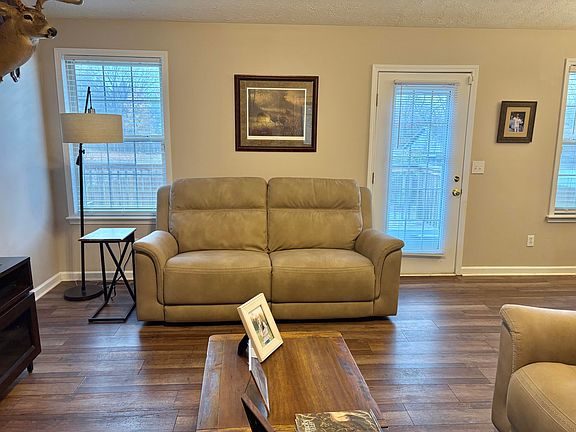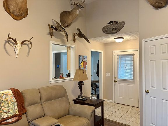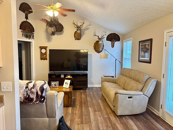 Great room, split bedroom plan, large utility room, three bedrooms, two baths, oversize two car garage, fenced yard with storage building , new gutters , some new flooring and new deck in 2024. Vaulted ceiling in master bedroom and great room. Covered front porch .