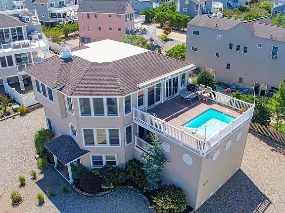 Located on desirable Little Bridge Road in beautiful North Beach with exceptional views of the open bay. Upper level boasts a large open floor plan with vaulted ceiling, hardwood flooring and walls of windows. Spacious updated kitchen with granite counter tops, stainless appliances and center island. The heated in-deck pool on this level is the perfect place to relax on summer afternoons and enjoy the sunsets in the evening. Primary bedroom has large ensuite bath with double vanity and walk-in shower. Lower level has a large family room, three additional bedrooms, two of which have en-suite baths, as well as another full bath and laundry room. Two car garage on ground level provides plenty of storage. This private lane has all underground utility lines. Deeded ocean and bay access allows you to enjoy the lifeguarded beach right across the street and drop a kayak into the bay just steps away.