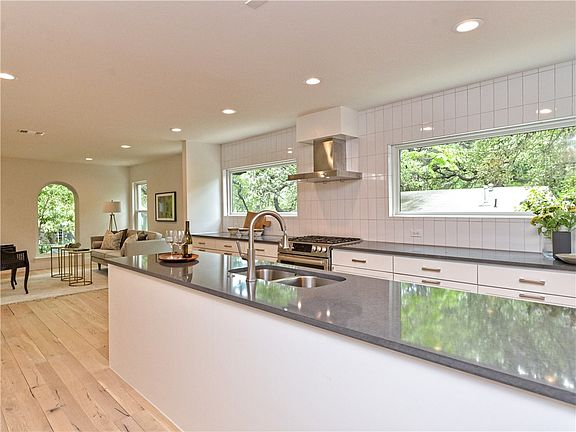 Beautifully and comprehensively remodeled home on tree-lined street in Travis Heights. Home was taken down to the studs and restored with new roof, windows, HVAC, insulation, drywall, plumbing, electric, custom cabinets and quartz counters, tile and hardwood flooring throughout. Great open plan with chef's kitchen as the centerpiece of the home. Large sliding doors open to the beautiful shaded backyard. Master and study on main level; 3 beds + den upstairs. See agent about ability to add covered parking.