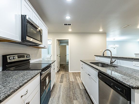 Don't miss out on this beautiful townhome! Vinyl wood flooring throughout with three bedrooms, two baths and a two car garage. Stove, dishwasher and microwave provided. Small yard will accommodate a small dog.