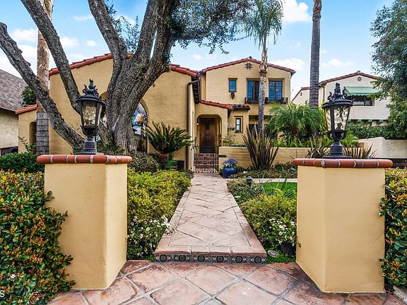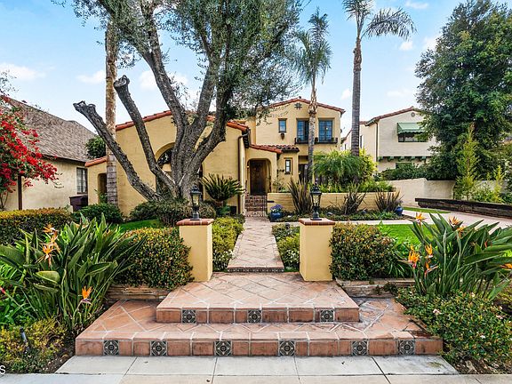 Built during the golden age of Hollywood and located in the coveted Rossmoyne neighborhood, this magical 1930 Spanish Revival Stunner is steeped in incredible vintage details. A lush green courtyard welcomes you onto the property and ushers you through an immaculately inlayed entry door. Coved ceilings, exposed beams and exquisite period features delight the eye at every turn. Beautifully maintained wood windows beckon the outside in throughout each room of the house. A romantic primary bedroom is anchored by a gorgeously tiled en suite bath. 3 more bedrooms and 2 additional baths round out the ideal layout. The galley kitchen and quaint breakfast nook open into a light-filled family room with views into the back yard. Bask in LA's golden hour from the saltwater pool and spa. Host your friends and family on your saltillo tiled patio with multiple seating areas. Two car garage with custom doors, dual zone HVAC, copper plumbing, updated 200 amp electrical panel, etc. Welcome home to your sanctuary in the city.