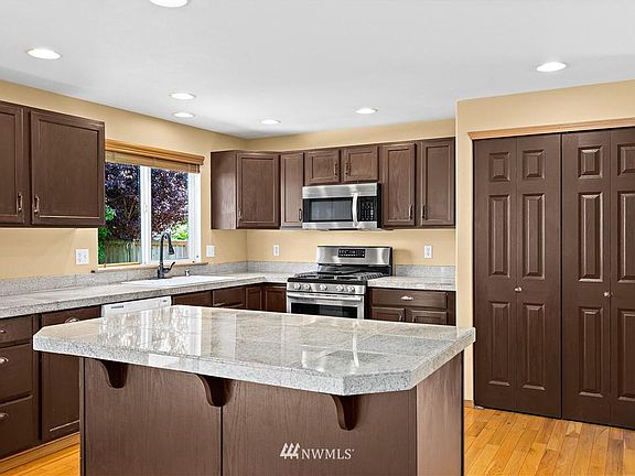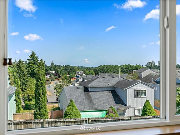 Mt Rainier Views from family room and upstairs bedrooms! Madrona Park walk to the RAC. Beautifully maintained 2600+ square foot home. This home has it all! Main floor living and dining room, updated kitchen with granite counter tops, updated cabinets, 5 burner stainless steel gas stove will have you cooking like a pro! Family room with gas fireplace, 1/2 bath, and a bedroom. Upstairs features a huge Master bedroom with walk-in closet and 5-piece bath with a garden tub, 3 additional bedrooms, and a full bath. The back yard is fully fenced, with patio, and a huge storage shed. A/C, sprinkler system, alarm system and 3 car garage! Conveniently located close to I5, JBLM, Recreational Athletic Center, schools, and shopping centers.