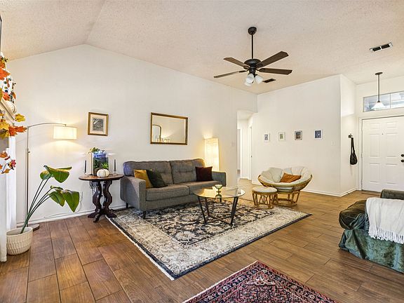 Located in the heart of Denton, this beautiful one-story home has been meticulously maintained and is truly move-in ready. The completely renovated kitchen is a showstopper, featuring sleek quartz countertops, a rich white tile backsplash, deep undermount sink, stainless steel appliances, new range hood, and updated lighting. A sunlit breakfast and dining area with charming bay windows creates the perfect space to start your day. The home features stylish, on-trend wood-look tile flooring throughout—durable, low-maintenance, and elegant. Fresh interior paint in 2023, new AC unit installed 2023 and a new water heater in 2025 add peace of mind. At the heart of the home is a spacious living room with vaulted ceilings and a cozy brick fireplace, ideal for relaxing or entertaining. Enjoy a large fenced backyard with a generous patio and majestic mature shade trees, offering privacy and tranquility. The attached two-car garage provides security, extra storage, and everyday convenience. Schedule your private showing today—this Denton gem won’t last long!