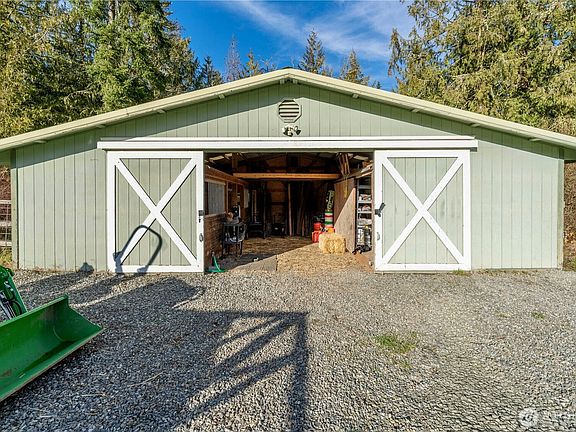 Wake up to mountain views & the quiet satisfaction of truly sustainable living in this special Sequim property. A classic farmhouse anchors the land, welcoming you with a wrap-around covered porch that practically begs for morning coffee & sunset unwinding. Inside, nearly 2,500 square feet of warm, comfortable living space offers solid wood floors, an updated kitchen, & room to gather, spread out, & settle in. Located on five sunny, south-facing acres, the land is thoughtfully set up for those dreaming of a slower, more intentional lifestyle. Garden beds are ready for spring planting, a spacious greenhouse waits for seedlings (two apple & one cherry tree provided), & a fenced organic garden is already in place. The chicken coop can accommodate 30+ chickens, & a 2,500-gallon rain-catchment system supplies water to the coop and drip lines for the garden and greenhouse—smart, efficient, & sustainable. For equestrian or outdoor enthusiasts, the barn features two stalls & a tack room, while the end of Olson Road opens directly to thousands of acres of DNR land & trails—ride, roam, or wander to your heart’s content. Behind the home, wooded paths wind through the trees, leading to a darling treehouse where imagination runs wild & childhood memories are made.