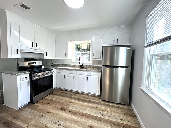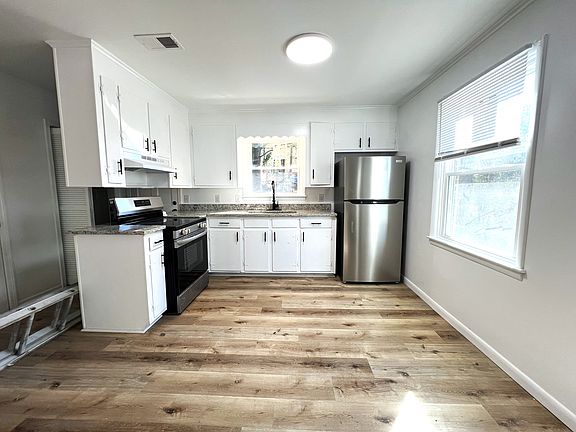 Fully renovated single family home located minutes to the interstate. Freshly painted throughout! Refinished hardwood floors in the living room. Eat in kitchen features new stainless steel fridge and stove, new flooring, and granite countertops. Three spacious bedrooms have brand new carpet, new LED ceiling fans, and ample closet space. Hall bathroom has been renovated to include new vanity, toilet, fixtures, and a tiled tub/shower combo. Central HVAC. Plenty of off street parking. Washer and dryer connections. Tenant responsible for yard maintenance and all utilities. Pet negotiable, subject to Owner's approval and fees. No smoking.