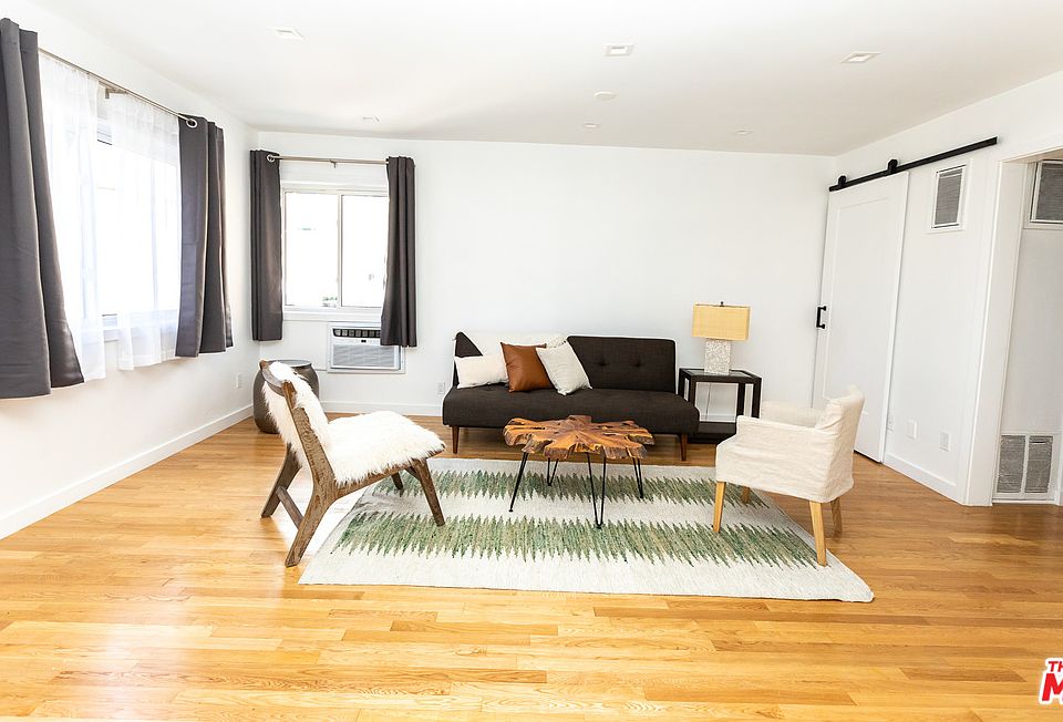 Newly renovated and beautifully updated designer, light & bright, open & spacious 1 bd/1 ba turn key apartment. Welcome home to the perfect combination of modern amenities with California Contemporary charm designed by Architrave Interiors. The open living room with huge windows allowing light to pour thru & high ceilings create a warm living space leading to the dining area & the modern kitchen complete with Caesar stone counter tops, new cabinetry, stainless steel appliances, & farmhouse sink. Generous sized bedroom & gorgeous modern bathroom with new lighting, vanity and a soaking tub. Hardwood Floors throughout living space, new plush carpet in bedroom, Recessed lighting, Too Many upgrades to list! New Washer/Dryer in unit behind a chic sliding barn door, A/C, 1 car covered parking, & ample storage space. Small complex on a quiet street, close proximity to the Grove, Beverly Hills, restaurants, shops, the upcoming Wilshire Metro Station, and freeways. This is a must see!