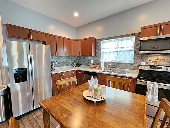 Updated in 2019 with additional updates, this darling home is just ready for you to call HOME. A nice front porch with plenty of room for patio furniture and flower pots welcomes you into the home. Wood look laminate plank flooring graces the living room and open concept kitchen. Lovely pecan colored cabinets, stone backsplash and stainless steel appliances compliment the space. A split bedroom design provides a large main bedroom with a double closet. There are two additional guest bedrooms - one with walk in closet. The bath has been updated with toilet, tub surround set, vanity, lights, faucet, wood look shiplap accent wall and recent new bath plumbing. A large laundry room has shelving and plenty of room for storage. A large privacy fence was added in 2021 - which gives so much room for entertainment, play area for your 2 legged kiddos and/or 4 legged kiddos, small garden, etc. Finally, a 1.5 car garage provides parking space or additional storage. Updates per seller: new gutters on house and garage 2022, fence in 2021, bath plumbing. Home Warranty Included! Being sold AS IS